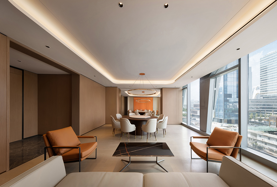 整个建筑设计围绕企业文化分解重构,贴合在建筑体量之上。建筑外观采用「7字板」造型,设计灵感来自三七互娱iCON,呼应“三七互娱”的特点,在趣味中体现独特性,传递出公司的使命和理念。