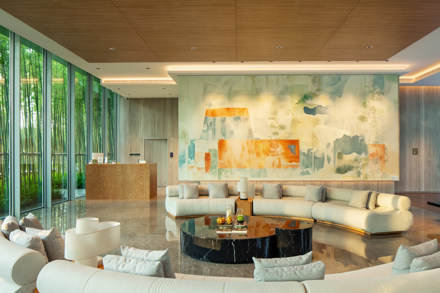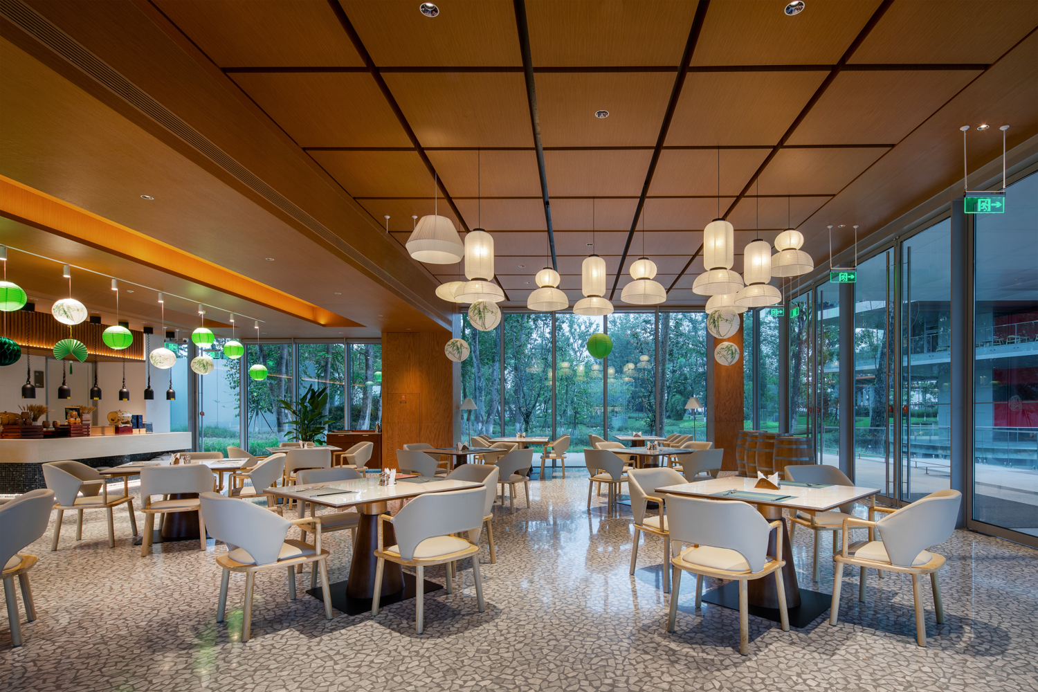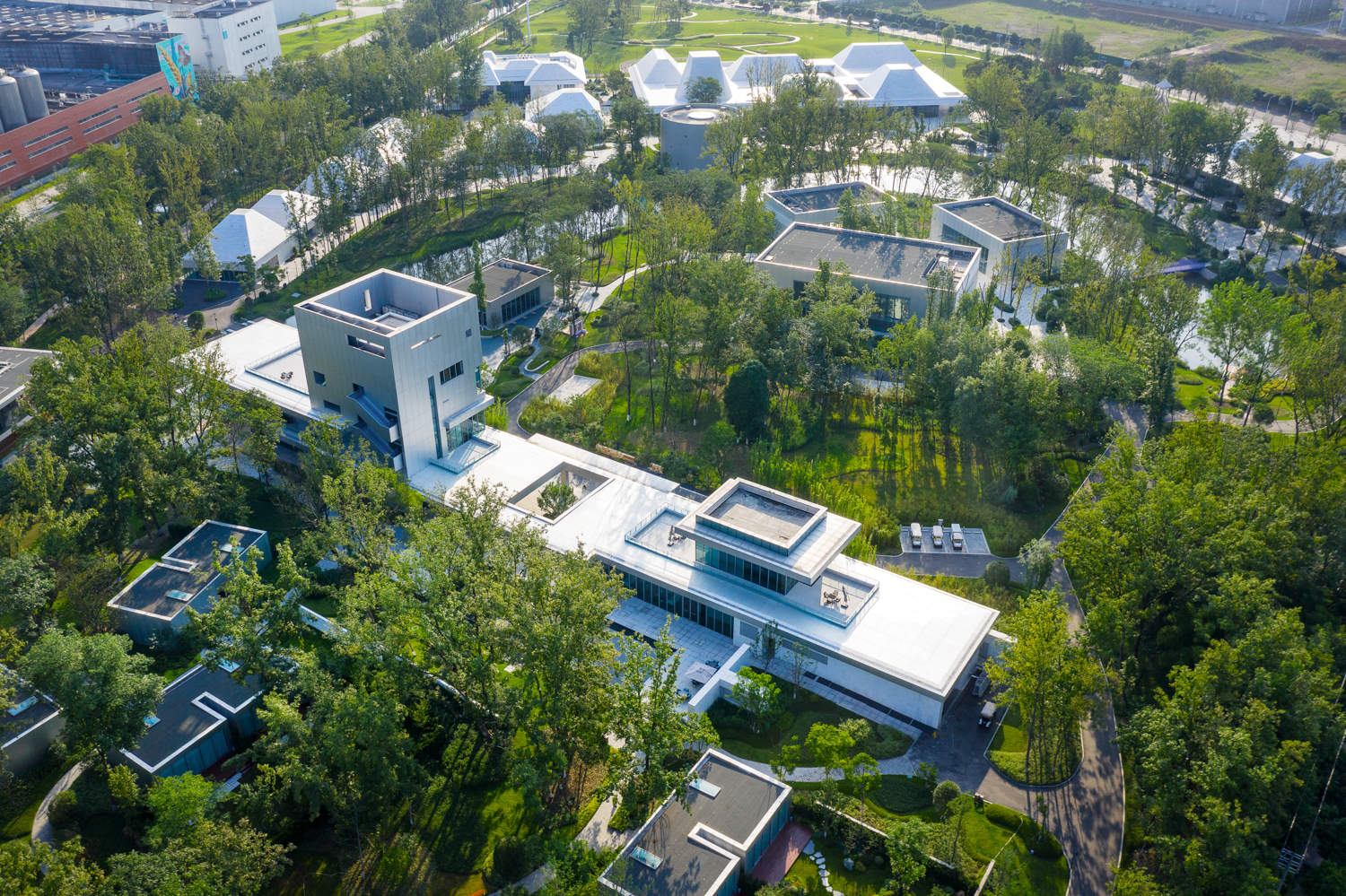 金螳螂负责酒店、游客中心、酒吧、图书馆、创意工坊、会议组团等20余栋建筑的深化设计及室内精装修施工。