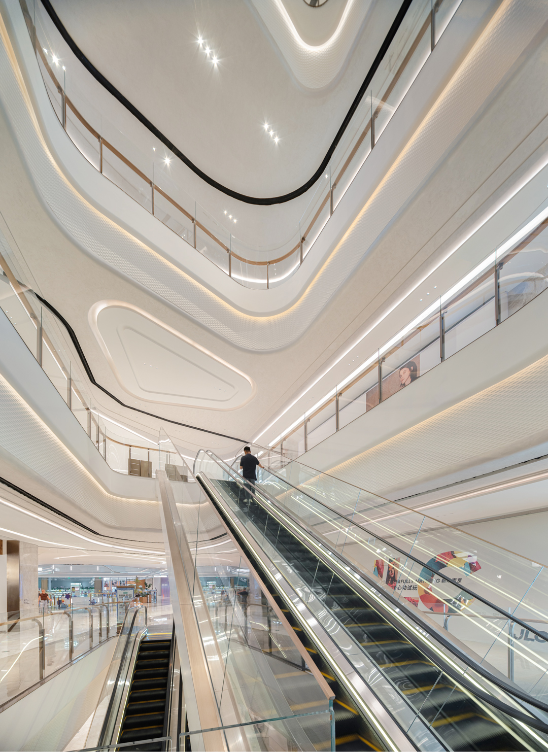 JLC在空间布局上借鉴了传统院落的“三进”理念,营造了层层递进的空间体验,从入口、中庭再到中央广场,每一步都充满仪式感和艺术性。30米挑高中庭和充满南京文化元素的纹样装饰,也巧妙融合了香港置地一贯低调奢华的空间美学,带来沉浸式的场景体验。